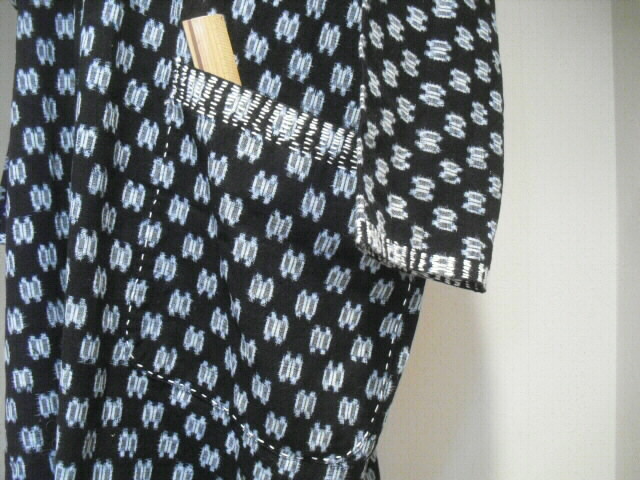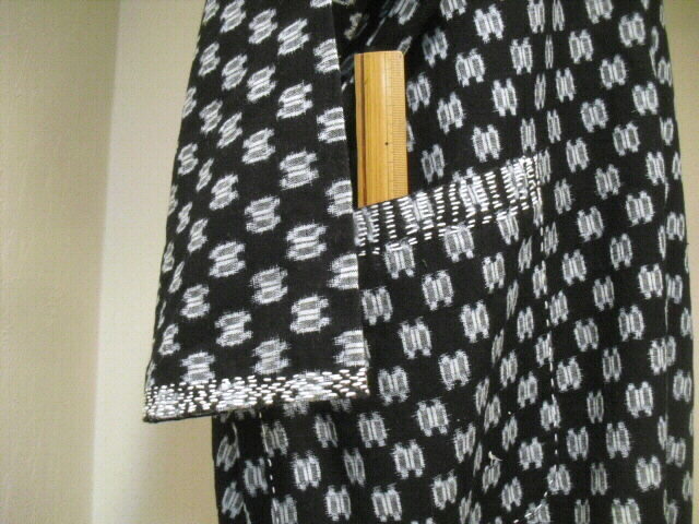 衿首、両袖口、ポケットの縁に刺し子をしています。