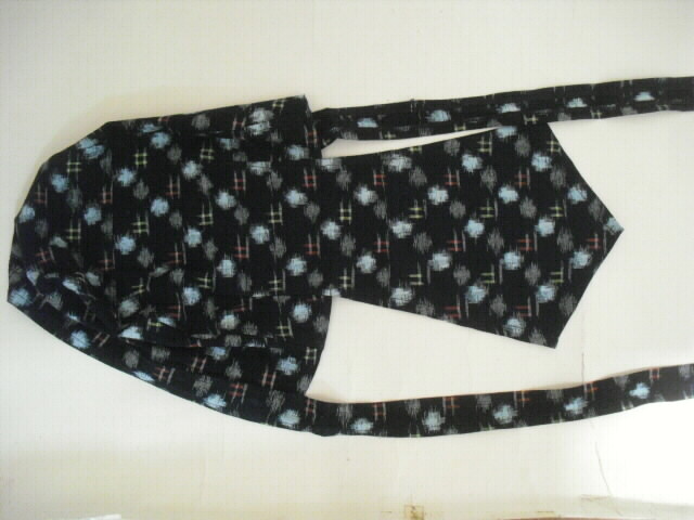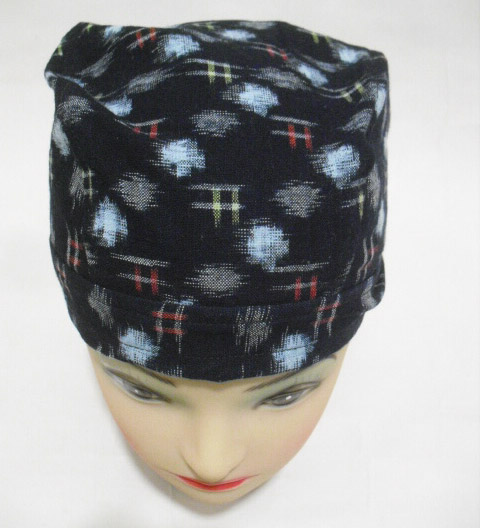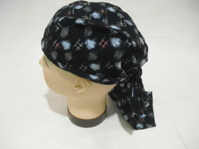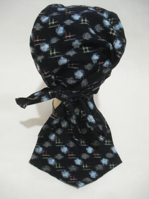 素材・・・綿サイズ・・フリーサイズ 長さ 57cm 横幅 32cm重さ 32g特徴・・・絣から作った海賊帽です。頭の後ろで結んで大きさを調整します。