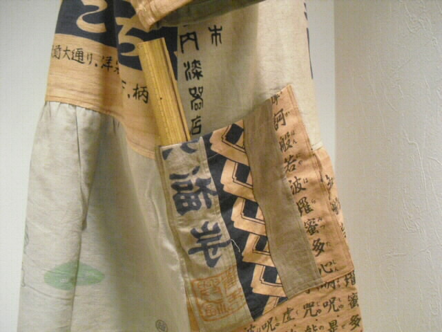前も後も違う柄の手ぬぐいを縦横に切り替えています。