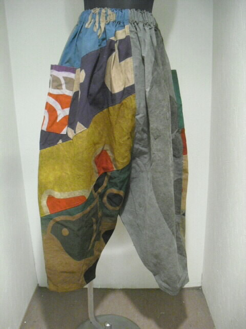 大漁旗と古布幕を組み合わせて作ったパンツです。