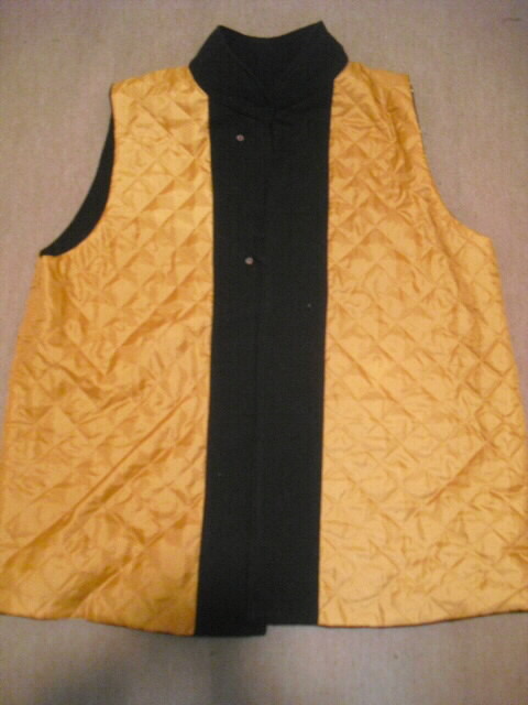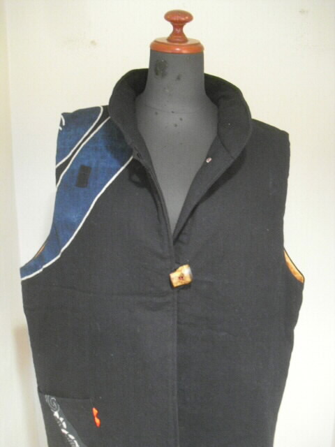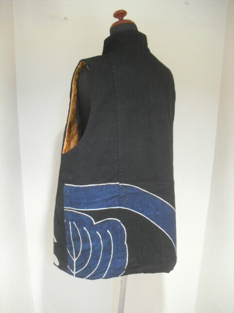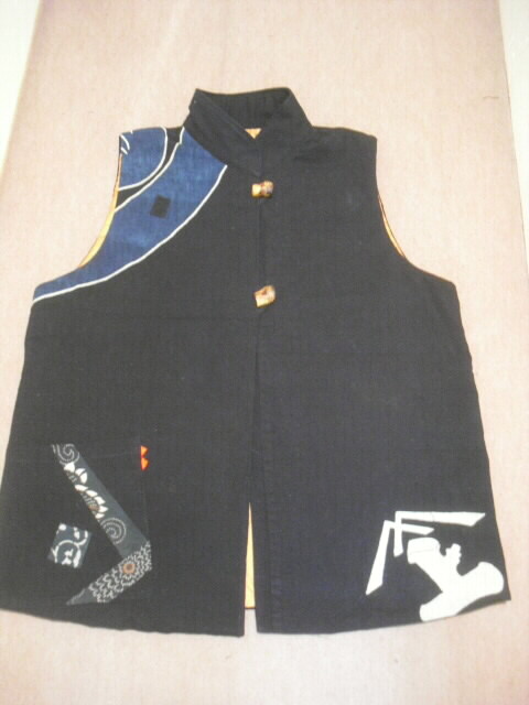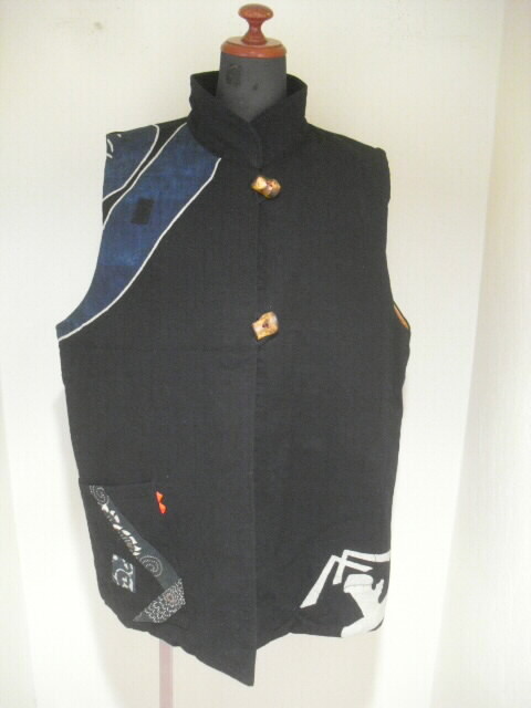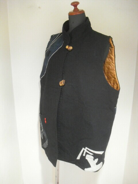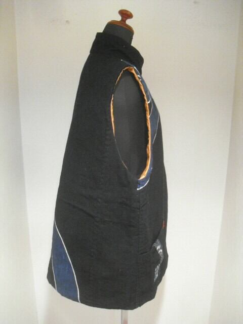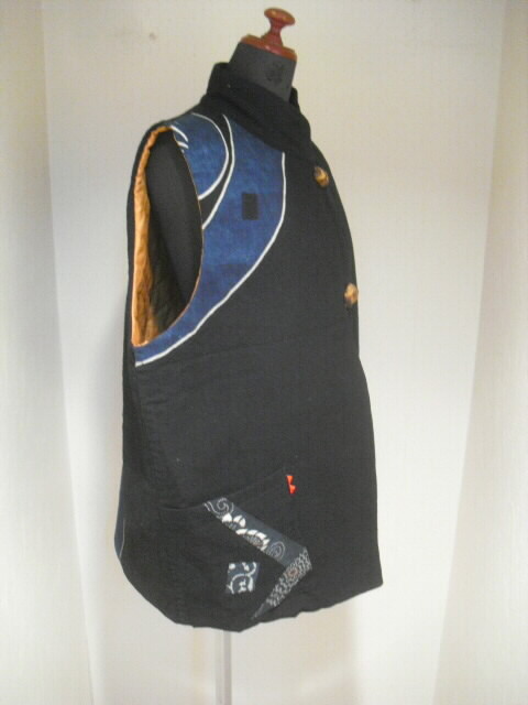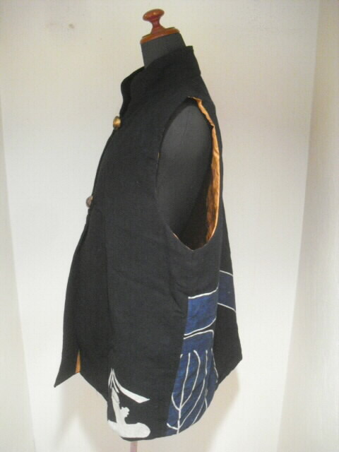 高価なリメイク素材の古布の油単(ゆたん)をリメイクした個性輝くベストです。