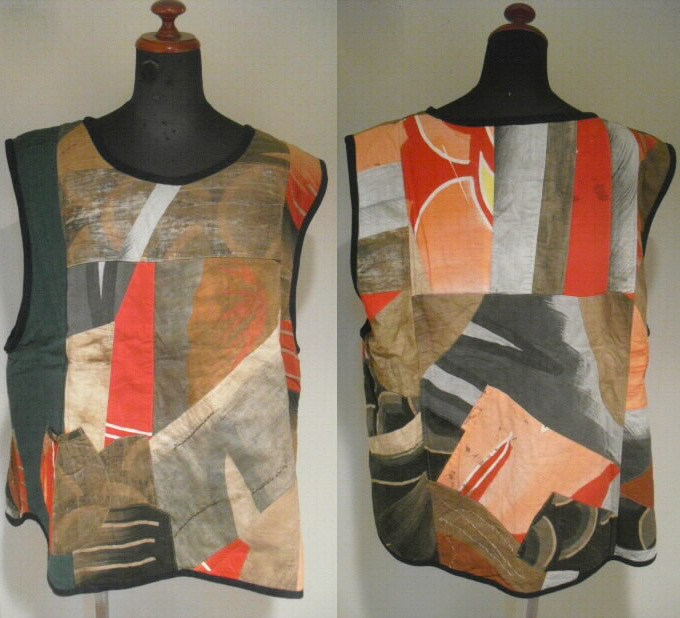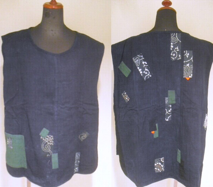 高価なリメイク素材の古布の藍染めと鯉のぼりを組み合わせて作った個性輝くベストです。