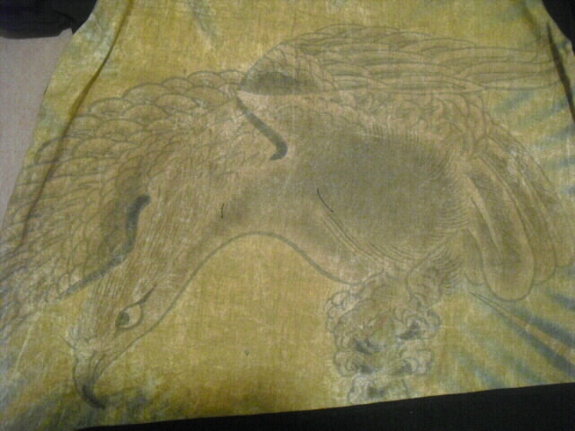 カスレ、色ムラ、染めムラが逆に個性的で味わいのある旗になり、素敵なお洋服に仕上がりました。