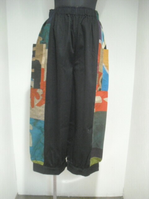 大漁旗と黒無地コットンを組み合わせて作ったパンツです。