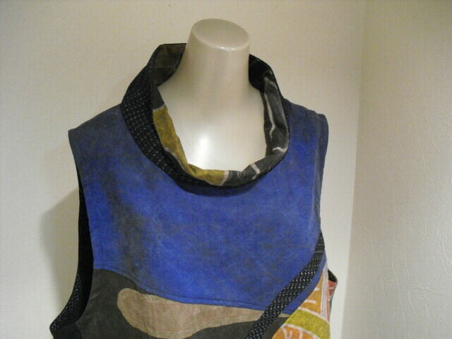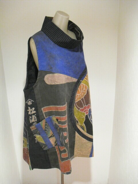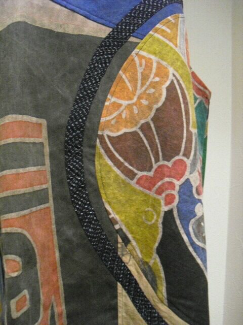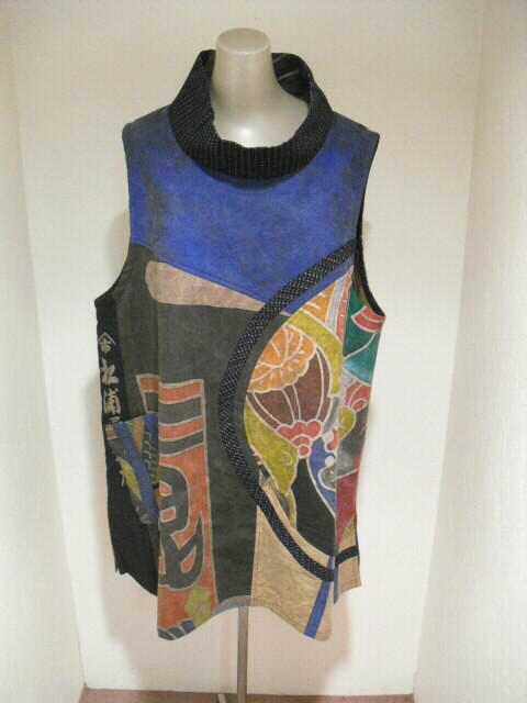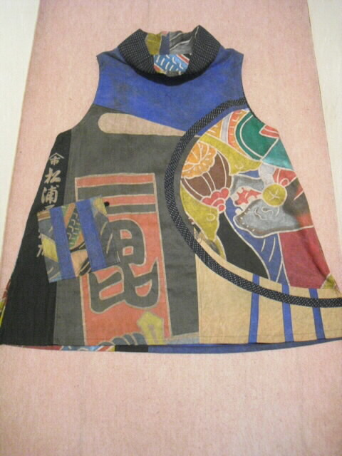 たくさんの高価なリメイク素材を組合わせて作った半纏チュニックです。