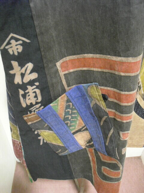 使用した素材は柿渋で染めてから鉄媒染した幟旗。