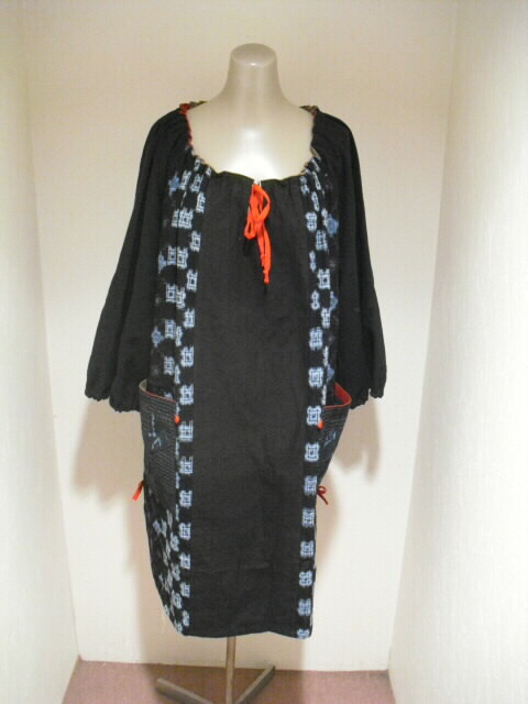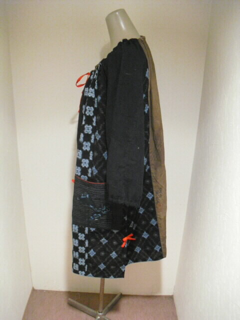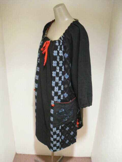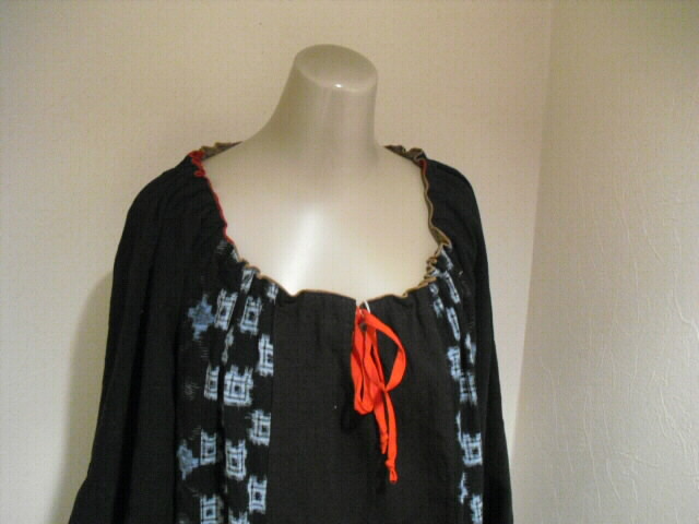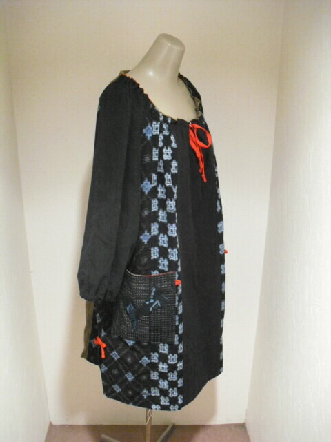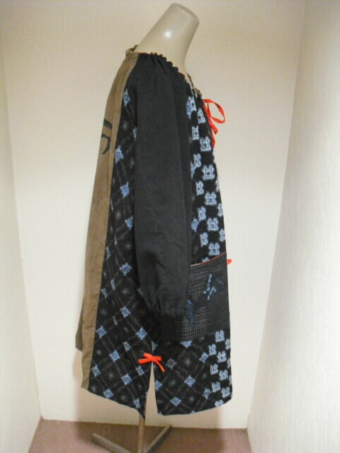 当店で大変人気の絣(かすり)、と鉄媒染した日本手ぬぐいを 組合わせて作ったチュニックの新作です♪