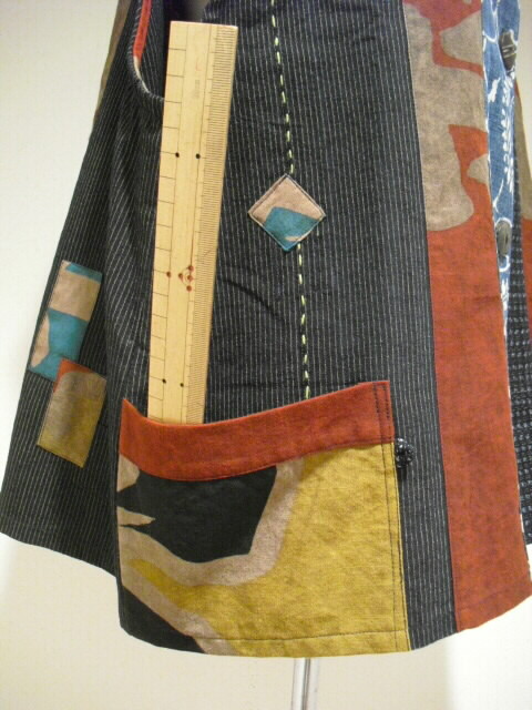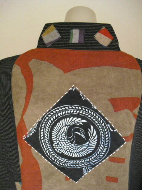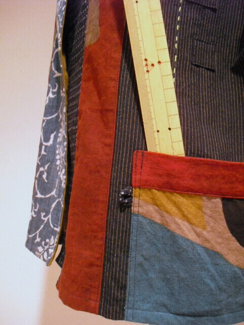 使用した素材は大漁旗、縞柄綿、書生絣、型染めハギレ。