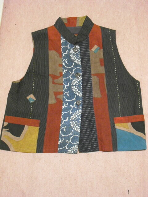 パッチワークと刺し子で遊びごごろタップリのベストが出来ました♪
