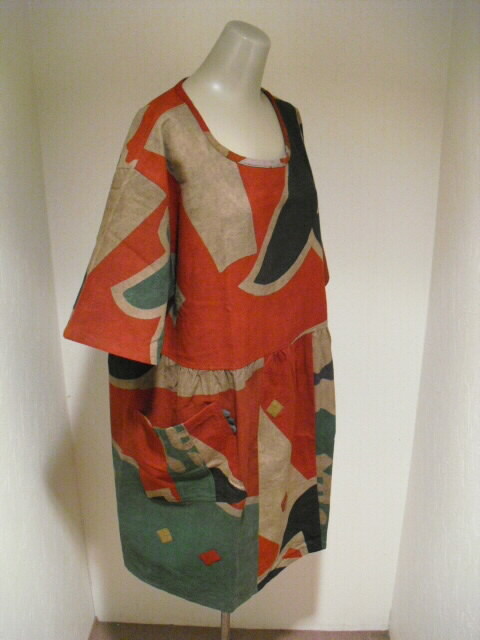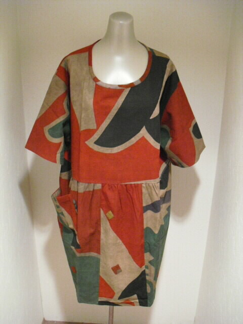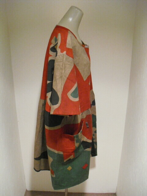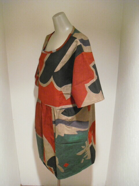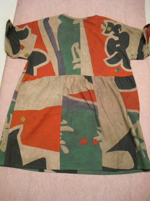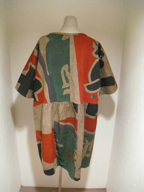 (後側) スッポリかぶれるデザインで、どなたにも気軽にお召し頂けます。 裏無しになっていますが生地がしっかりしていますので長い期間着ていただけるチュニックです。
