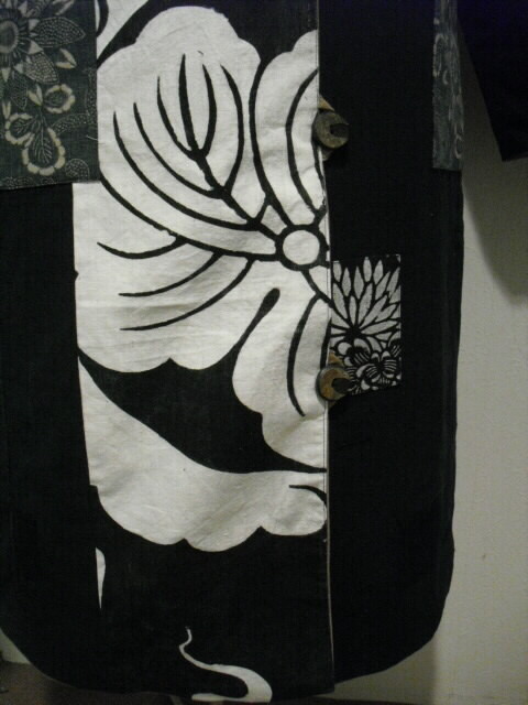 藍無地側は右の身頃を切り替えて油単を大胆に配置。