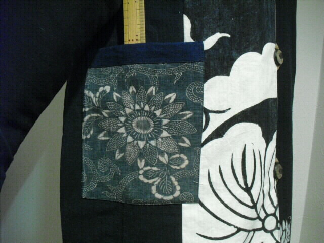 裏は柿渋染めの厚地木綿に幟(のぼり)をパッチしています。