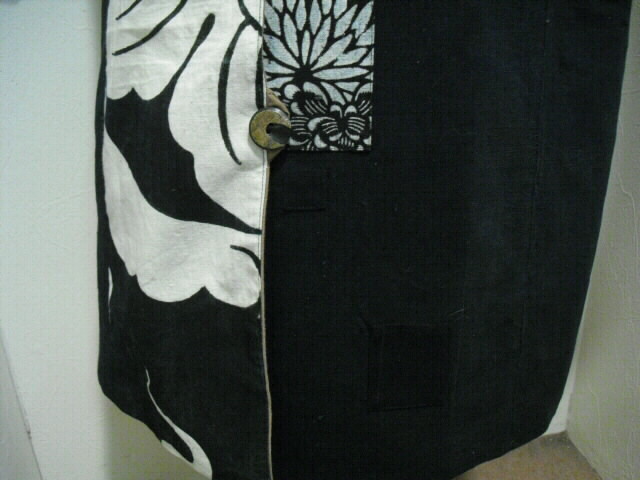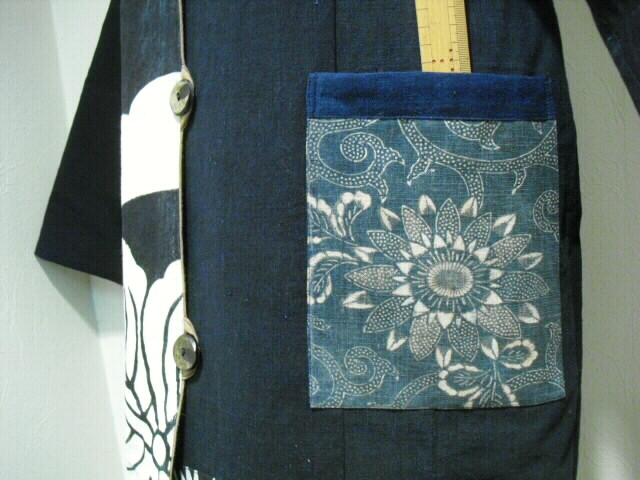 両脇に型染めハギレで貼り付けポケットを付けました。