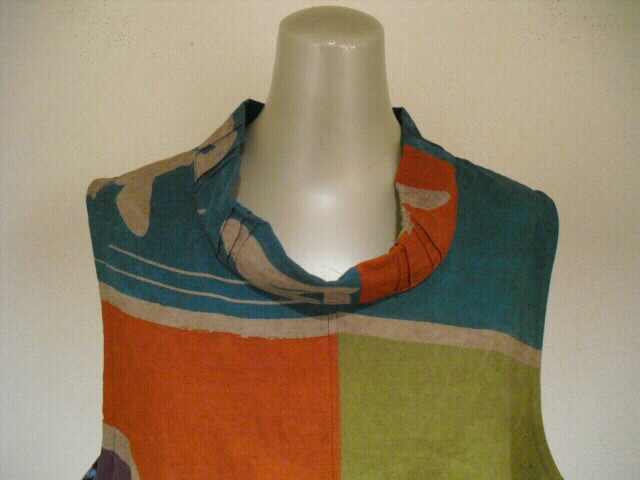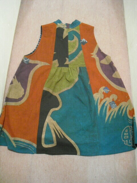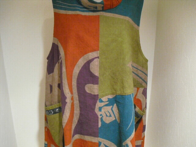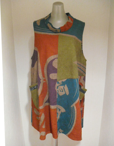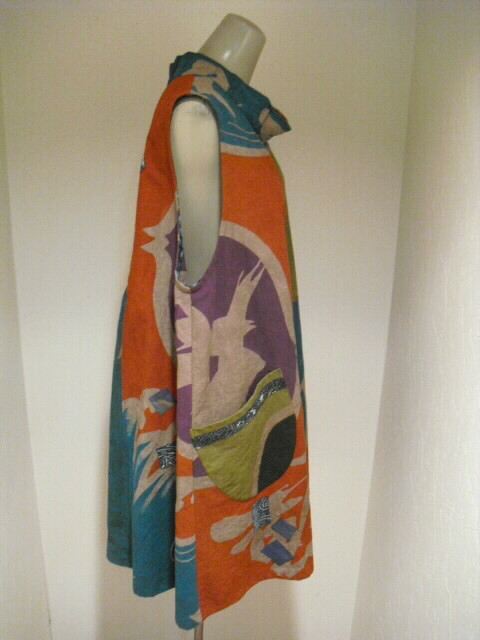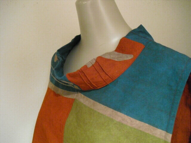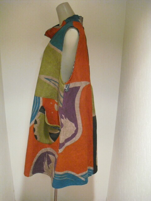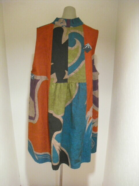 (後側) 裏無しになっていますが生地がしっかりしていますので暖かい季節は中に半袖Tシャツ1枚で、 肌寒い季節は中に長袖のTシャツや薄手のセーターを着て長い期間着ていただけるチュニックです。