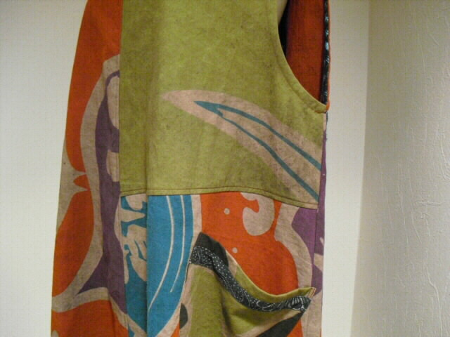 (写真はこのチュニックの左脇部分です) 鉄媒染料は繊維に均等に固着させるのは難しく部分的に色合いに違いが でることがあります。手染めならではの風合いとご理解いただければ幸いです。