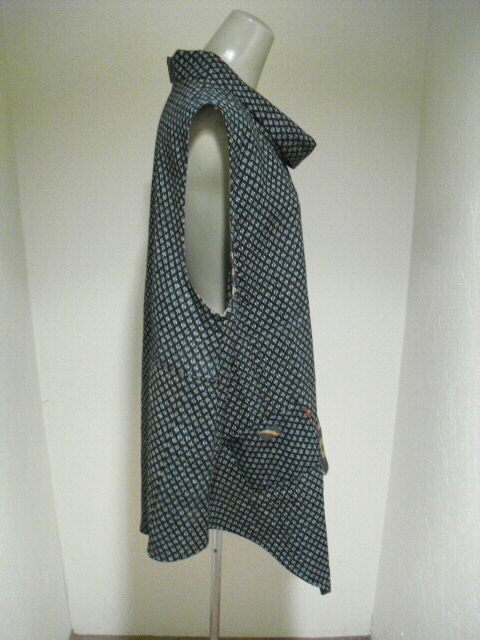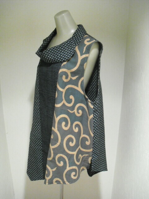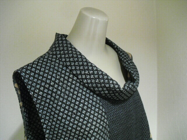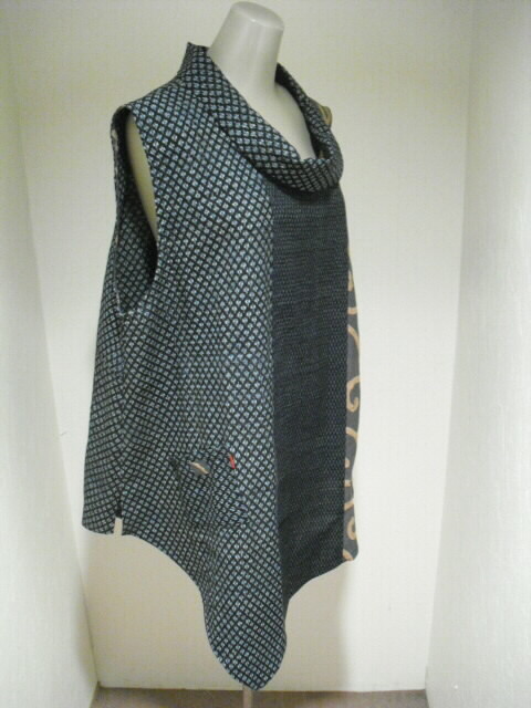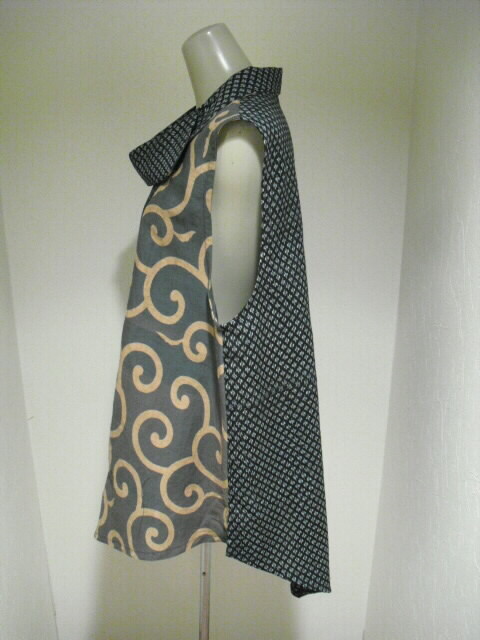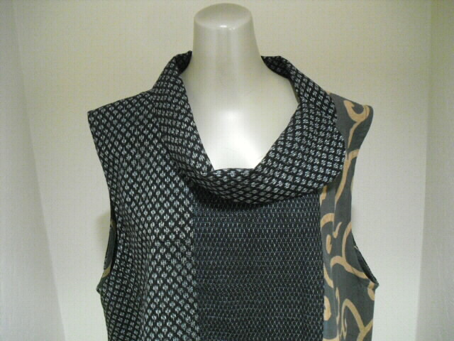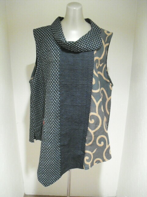 絣(かすり)、と鉄媒染した風呂敷を組合わせて作ったチュニックです。