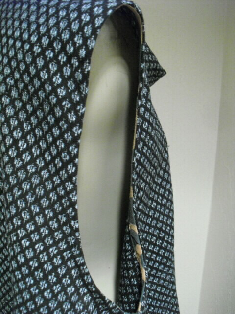 袖ぐりには身頃に使った風呂敷生地で幅1cmのバイアステープを付けています。