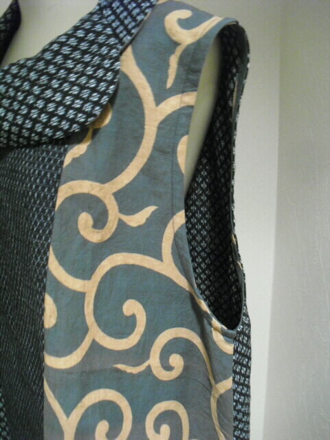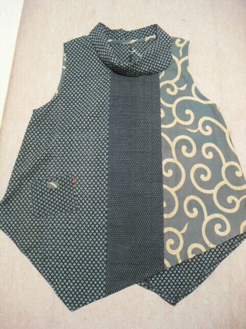 表は絣、裏には身頃に使った風呂敷生地を付けています。