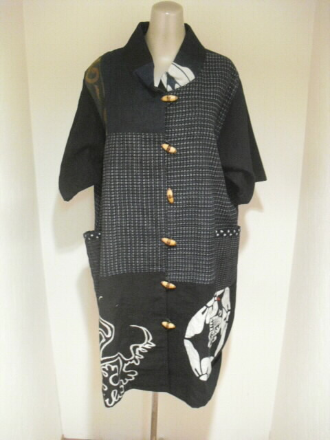 【古布・着物リメイク服】 古布の組合せワンピース