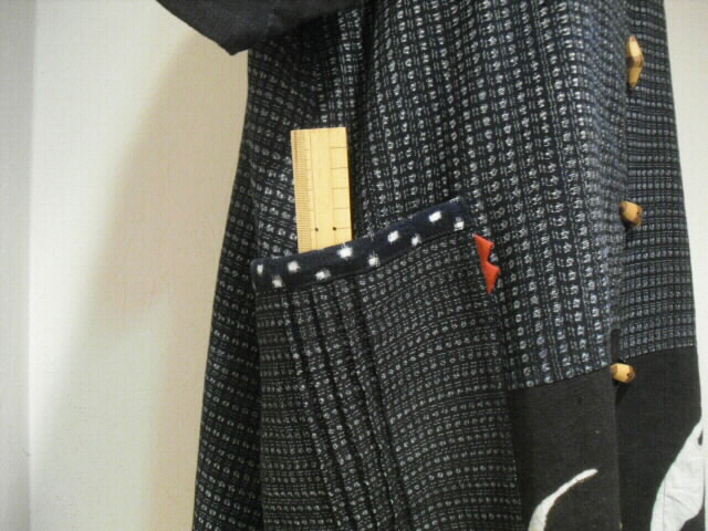 両脇に、書生絣で貼り付けポケットを付けています。