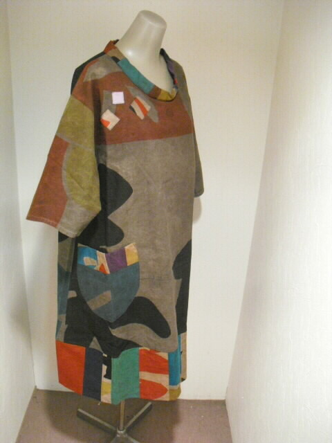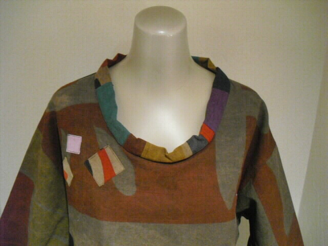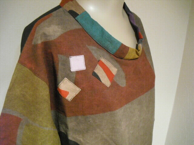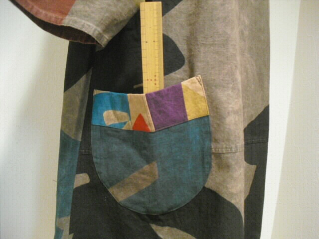 左胸に3枚の別布をパッチしています。 色合いの違いが素敵なアクセントになっています。