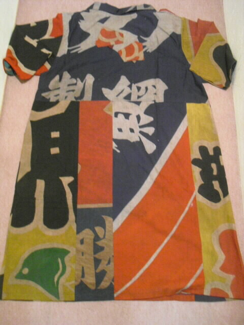 後は背中に大漁旗の紺に白抜きの文字の部分を配置。
