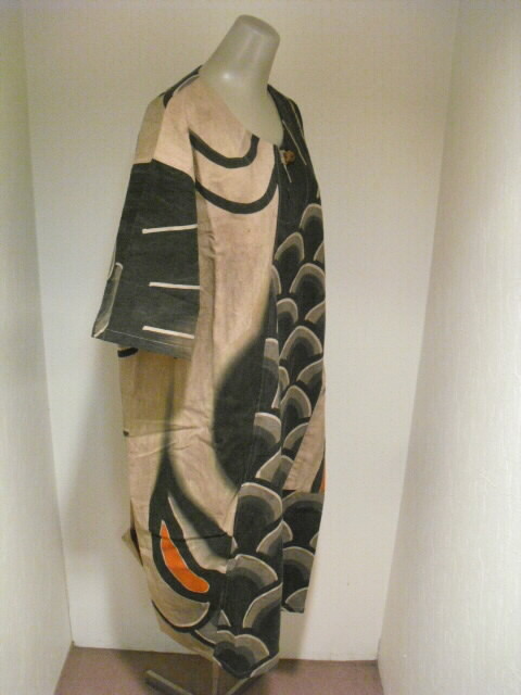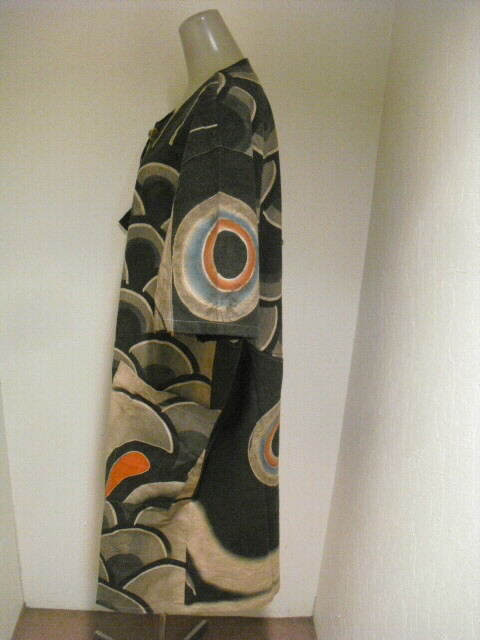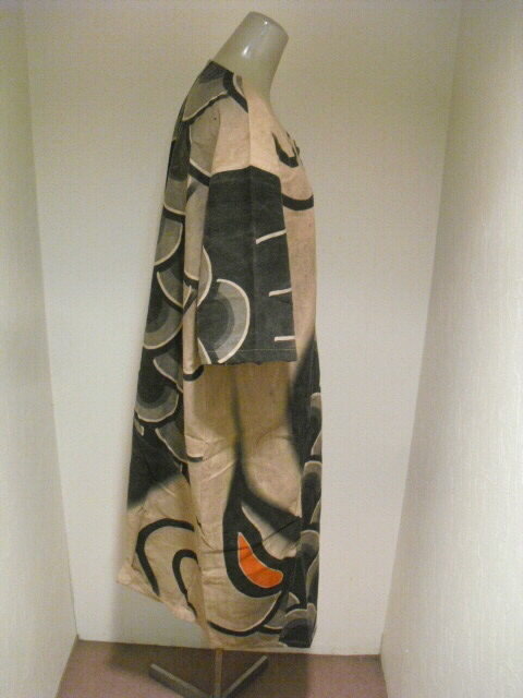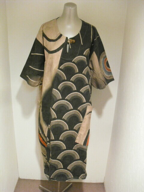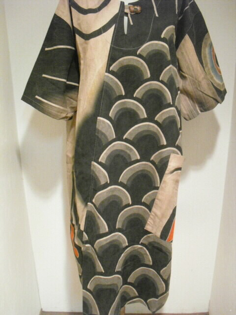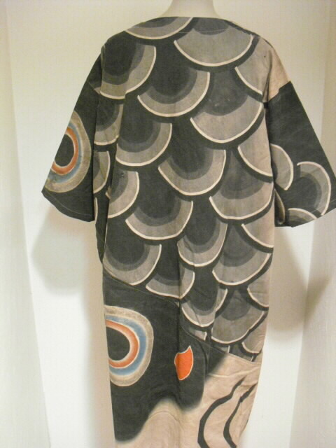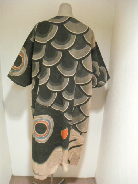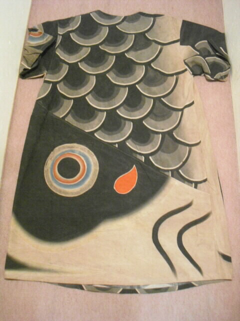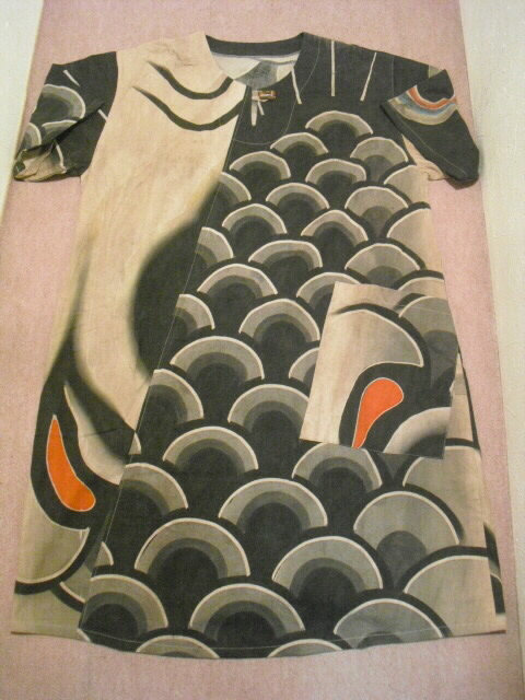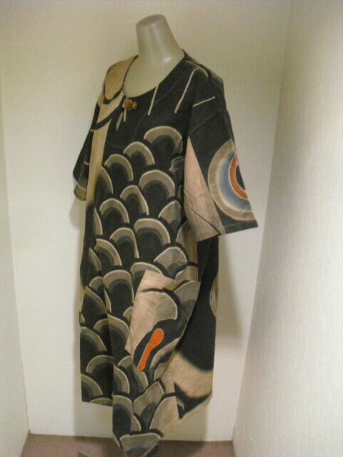 【古布・着物リメイク服】 柿渋(墨染)鯉のぼり半袖ワンピース