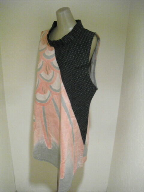 古布の鯉のぼりと絣(かすり)を組合わせて作ったチュニックです。 高価なリメイク素材をたっぷり贅沢に使った個性輝くお洋服です。