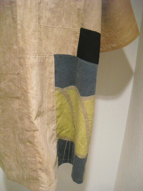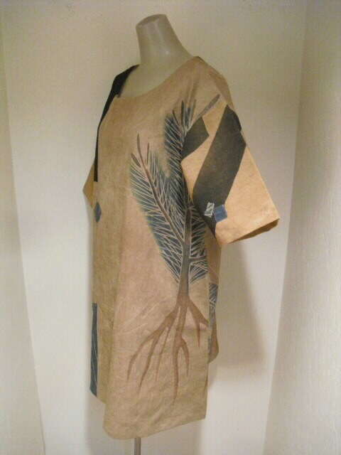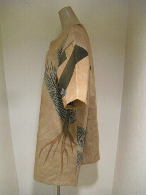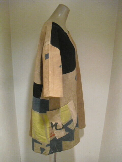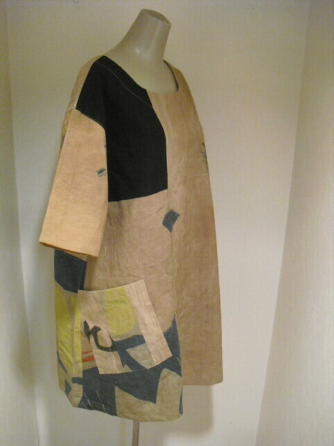 裏無しになっていますが生地がしっかりしていますので暖かい季節は中に半袖Tシャツ1枚で、肌寒い季節は中に長袖のTシャツや薄手のセーターを着て長い期間着ていただけるチュニックです。 |