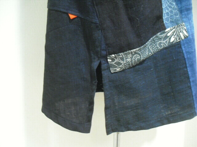 前は色違いの藍染め無地を縦に4箇所で切替えています。
