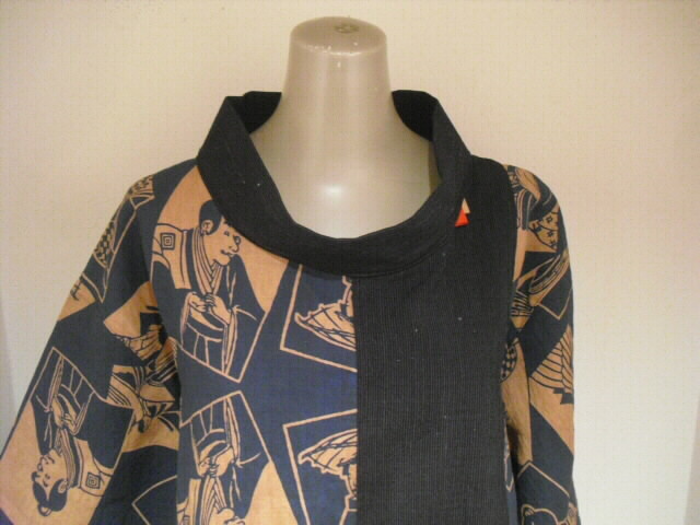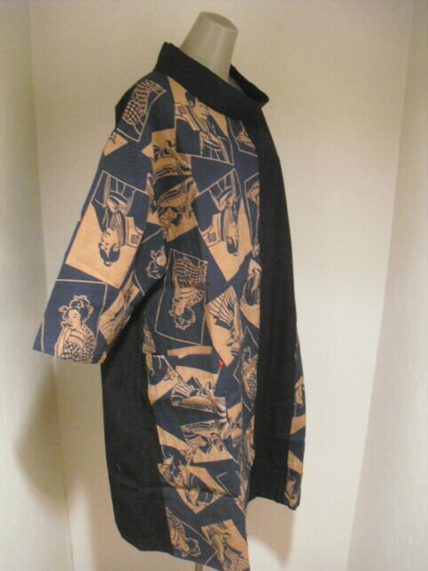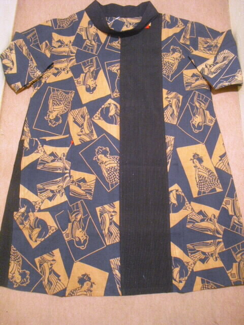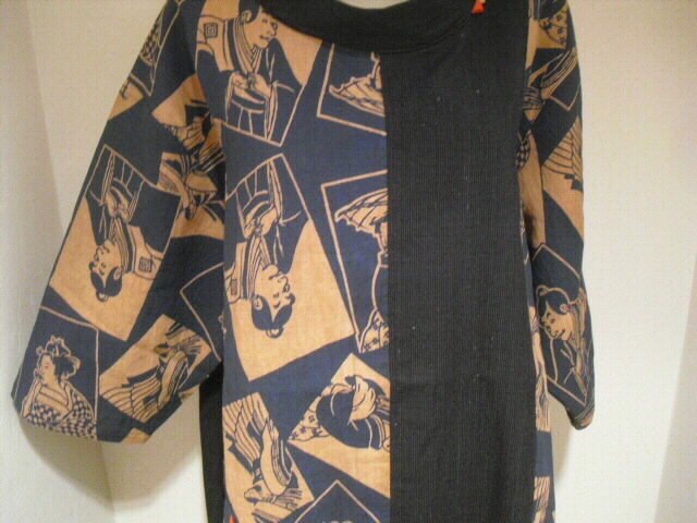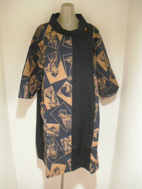 浴衣と縞木綿を組み合わせた個性輝くチュニックです。