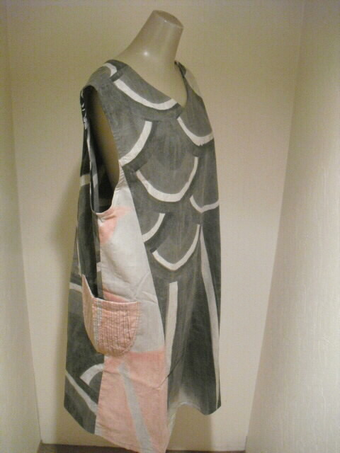 【古布・着物リメイク服】 柿渋(墨染)鯉のぼりジャンパースカート