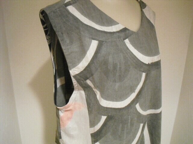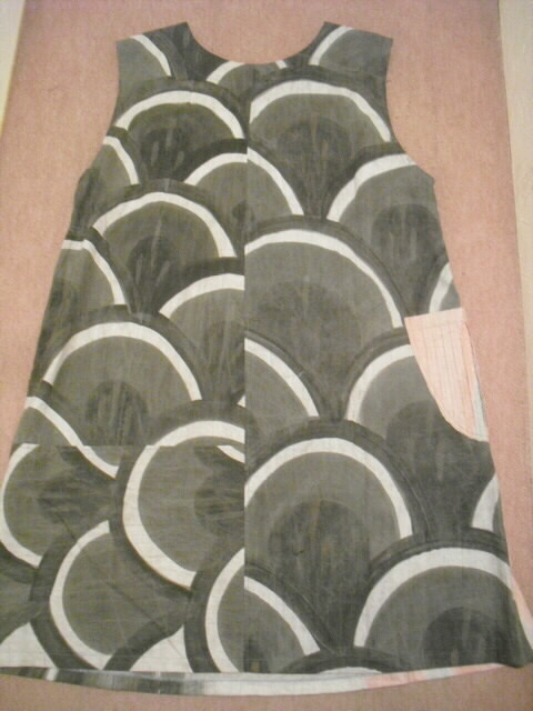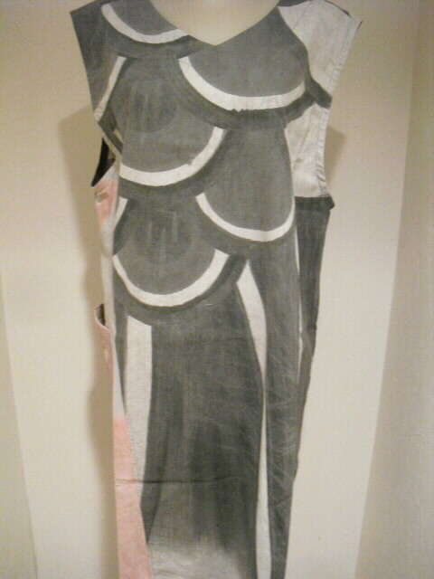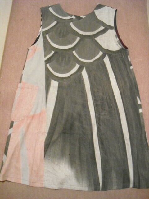 この作品は鯉のぼりの柄を生かした独創的なデザイン、柿渋・墨染めで素敵な色合いのお洋服に仕立てあがりました。