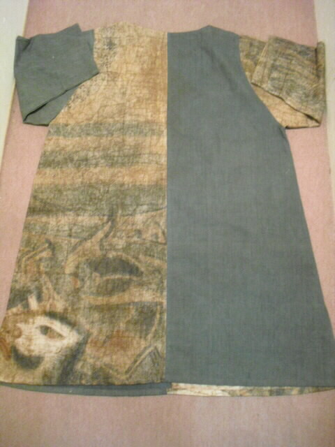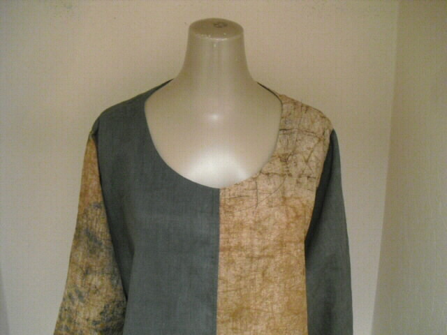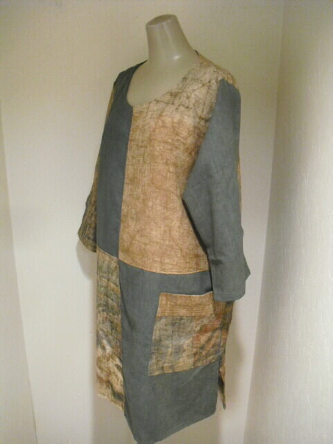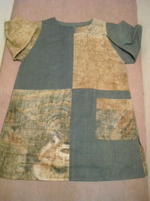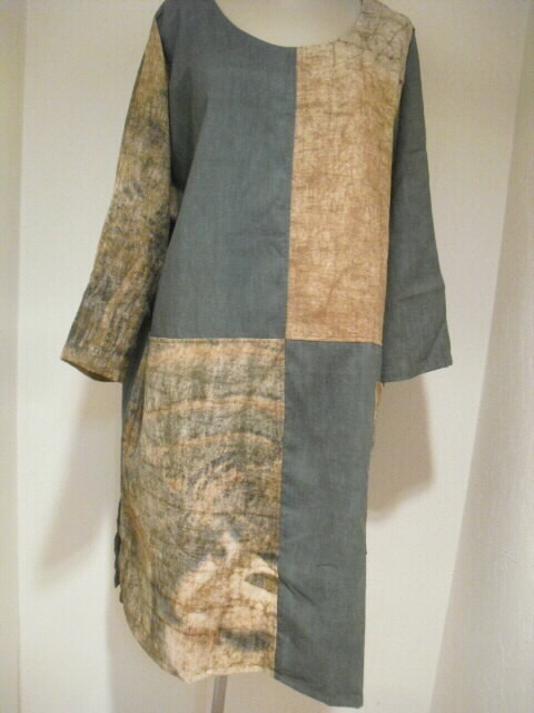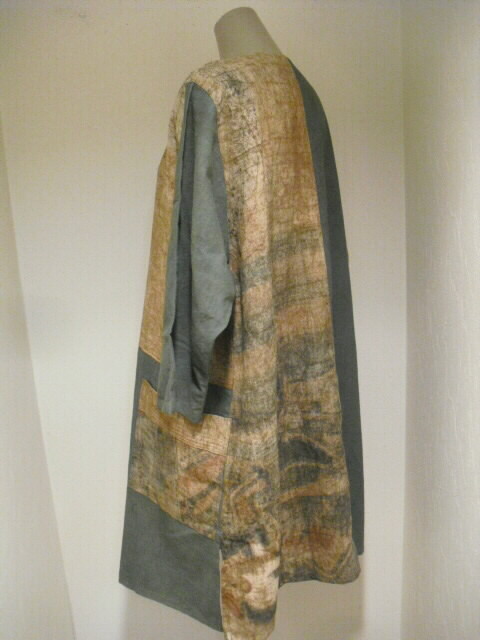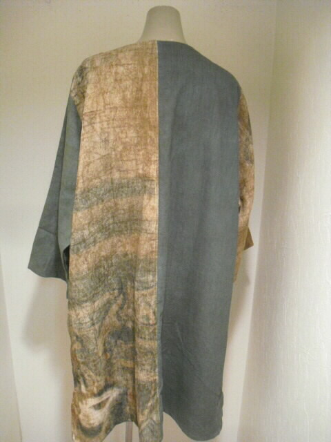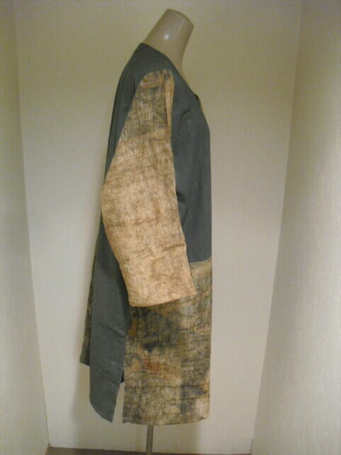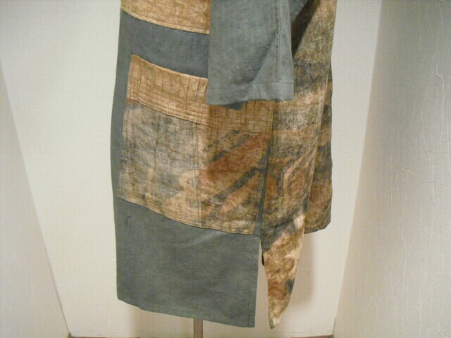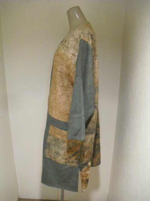 柿渋染めした古布幕と幟旗で作った個性輝くチュニックです。