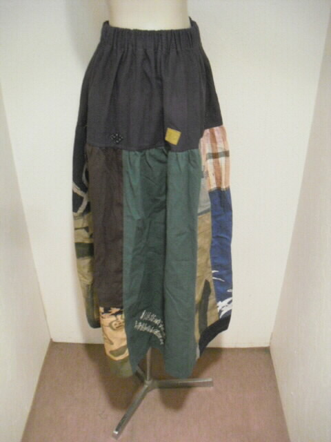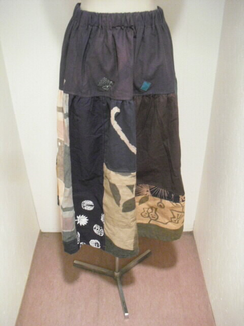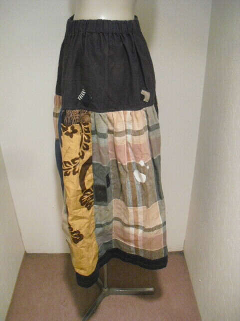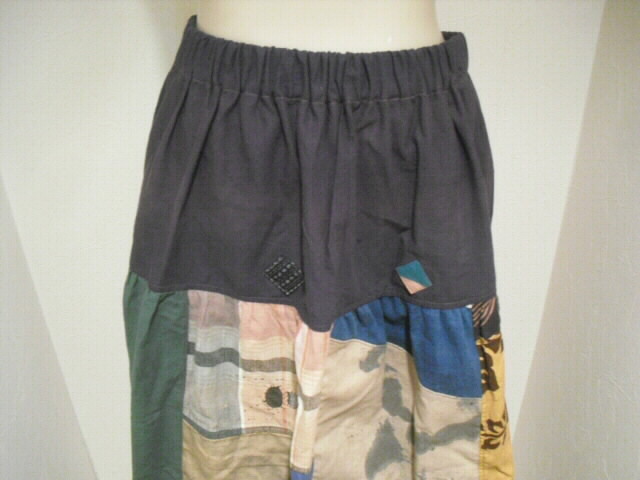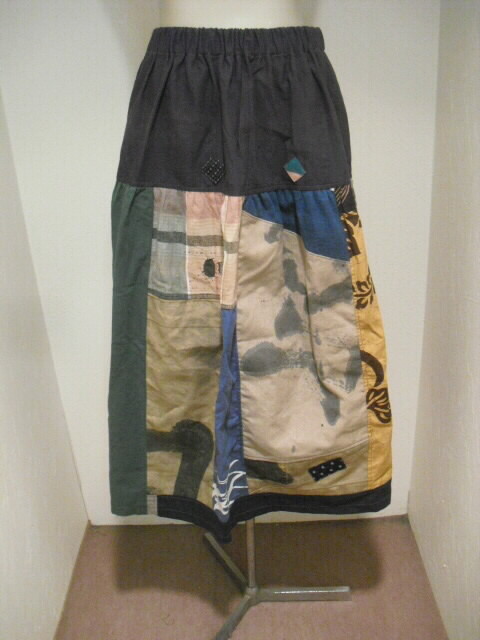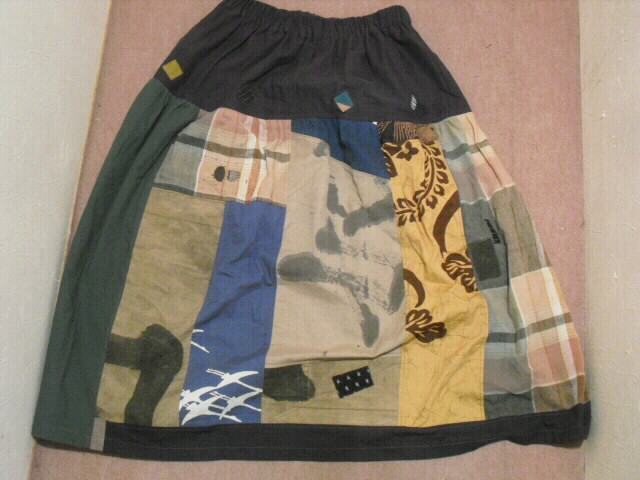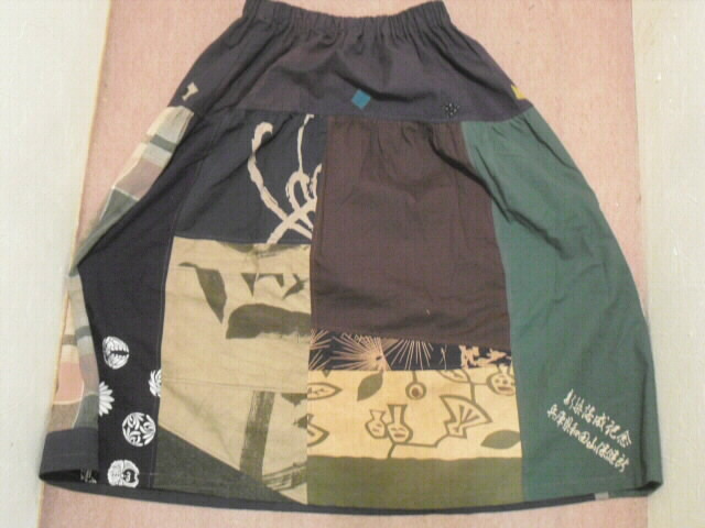 数種類の風呂敷と手描き布を組み合わせて作ったスカートです。