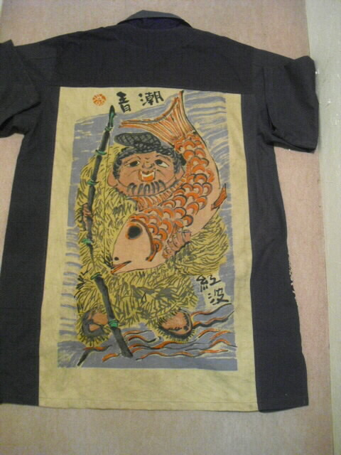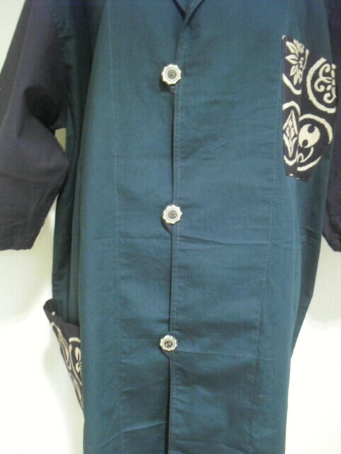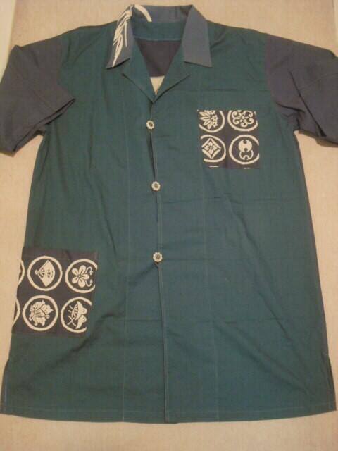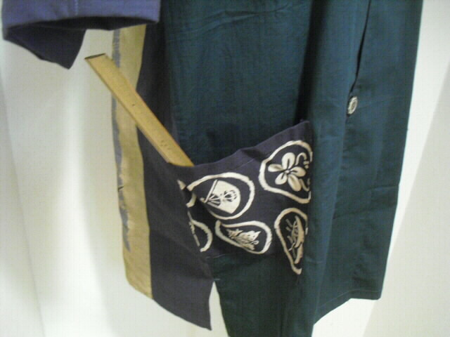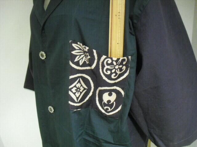 前は緑色の風呂敷がベースでアクセントに胸ポケットと脇ポケット和柄の風呂敷を入れました。