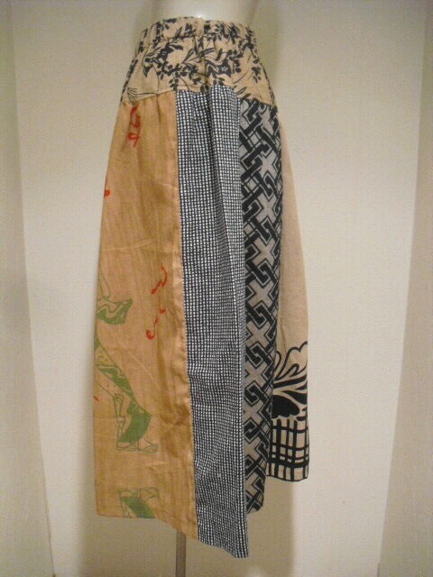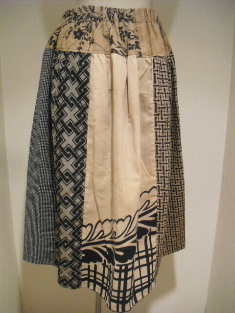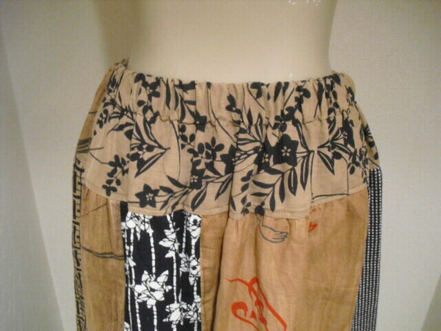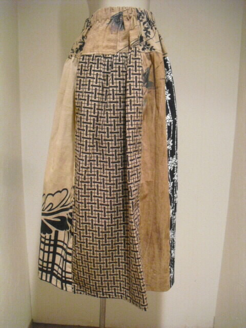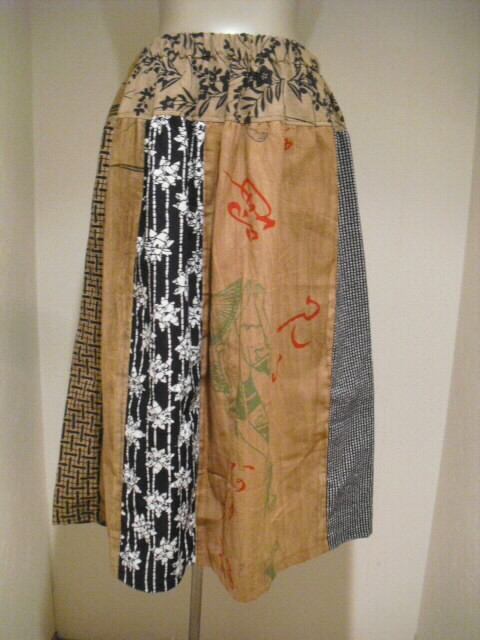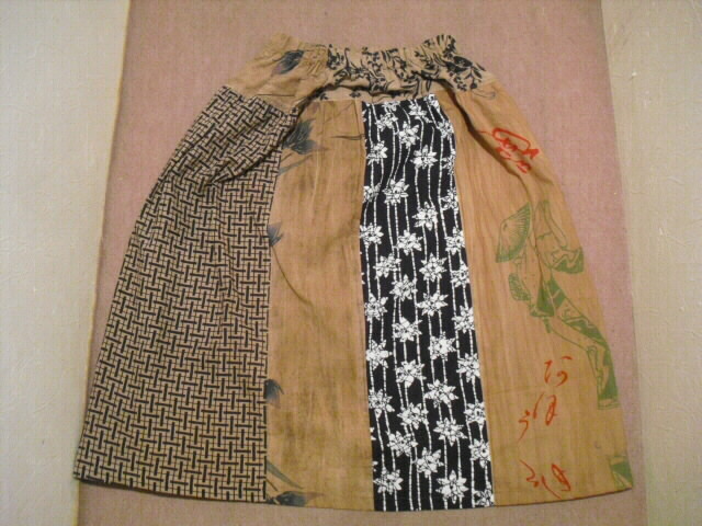 【古布・着物リメイク服】柿渋染め浴衣の組合せスカート