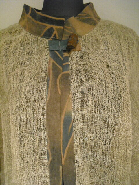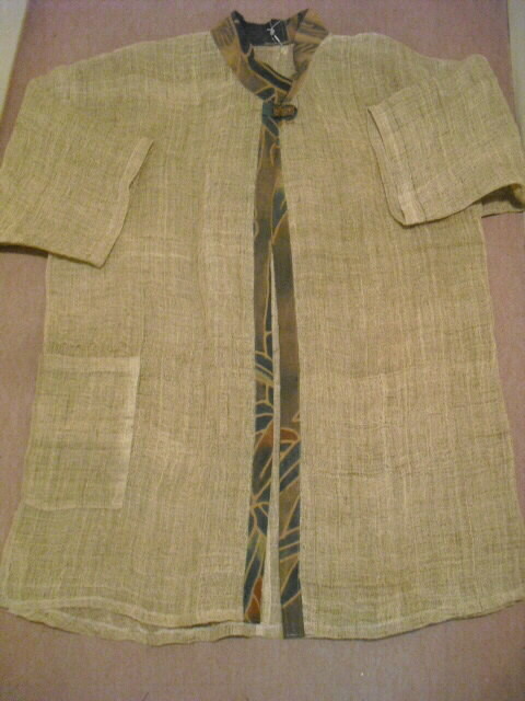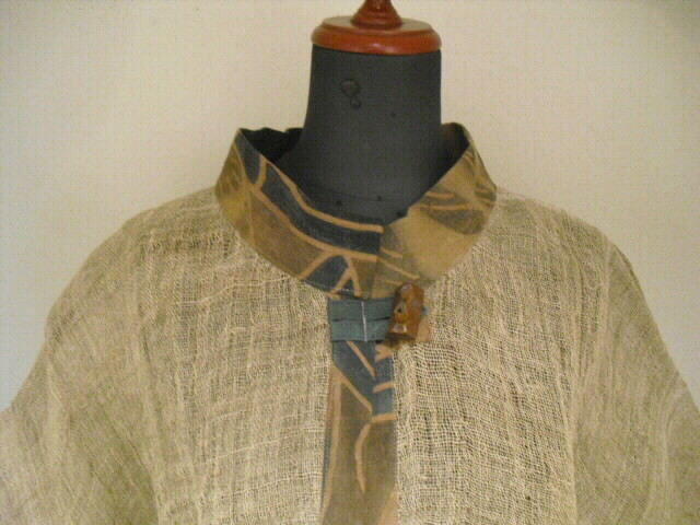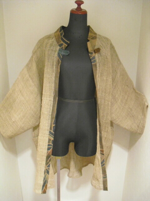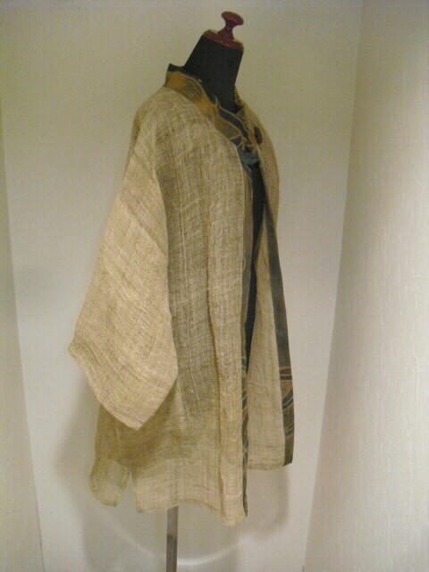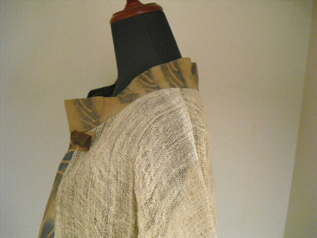 ポイントに衿と前の見返しには柿渋染めしたのぼり旗を組み合わせています。