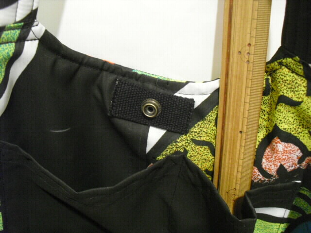 素材・・・ナイロン サイズ・・・幅 32cm×高さ 26cm×底幅 11cm持ち手・・・長さ 42cm特徴・・・古布の武者絵幟で作った手提げバッグです。最近の幟旗で素材は化繊(ナイロン)です。水に強く、重さ140gと大変軽いバッグに仕上がりました♪キルト芯をはさんでフリーステッチをかけています。ふわふわした柔らかい手触りです。表と裏は、違った絵柄になっていますので両面で違う表情も楽しめます。開け口はボタンで留めるタイプです。中には深さ12cmのポケットが2箇所。(口幅×13cmと9cm)底板が付いています。重い物を入れてもバッグの型崩れを防いでくれます。ちょっとしたお出かけやご旅行時のサブバックに・・・周りの視線を惹きつける♪お洒落な手づくり一点モノのバックです。価格 5,800円