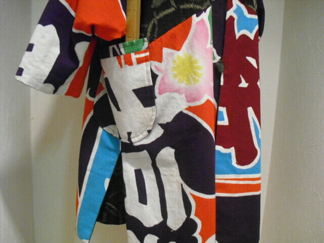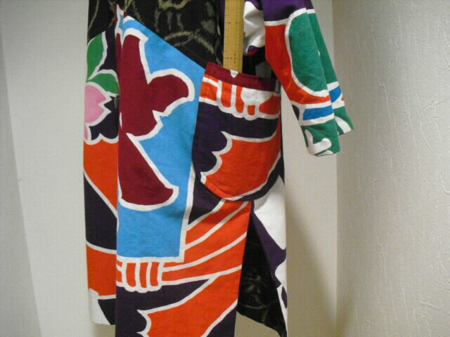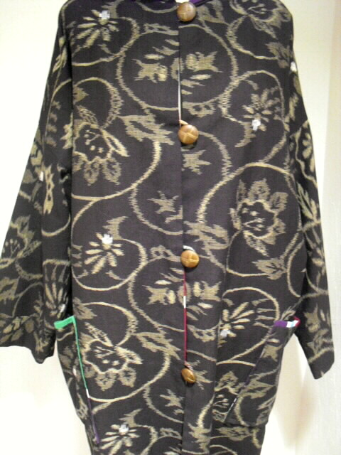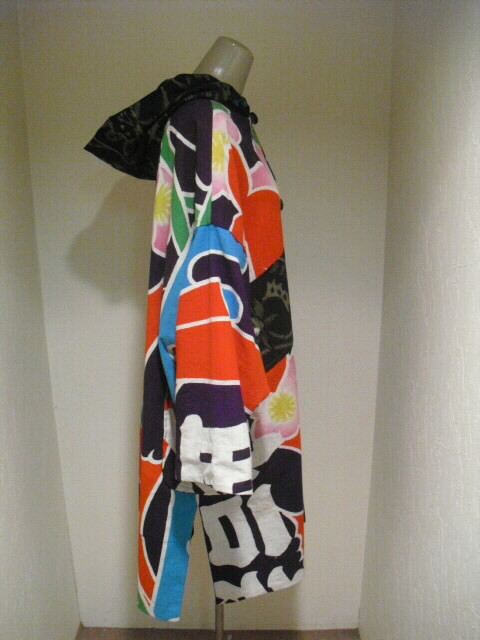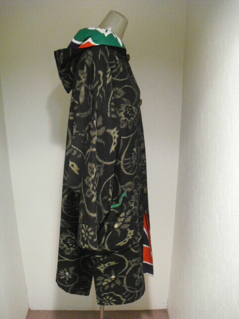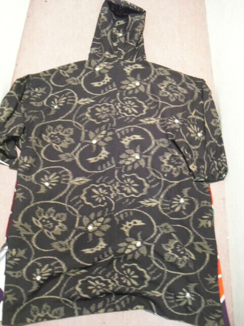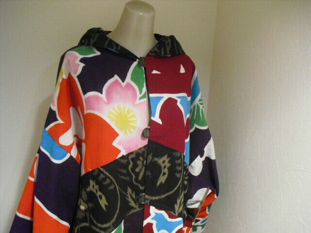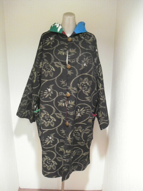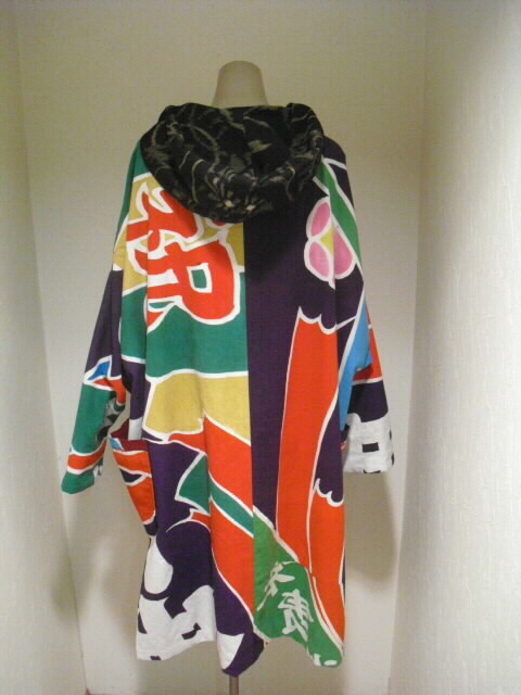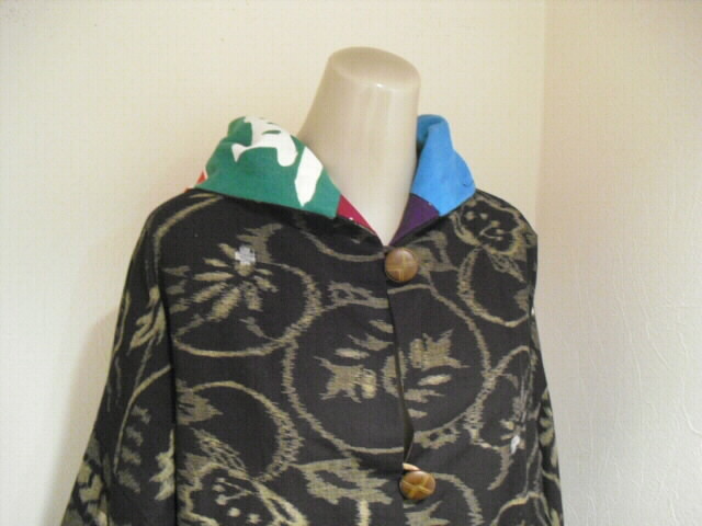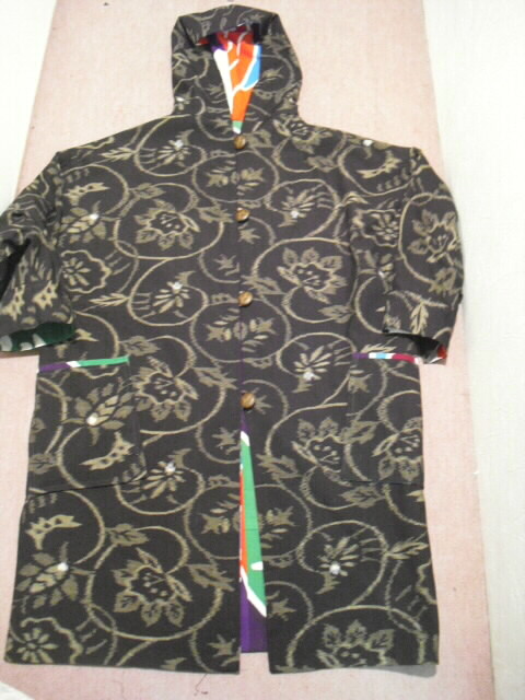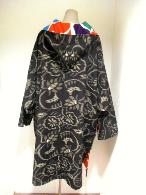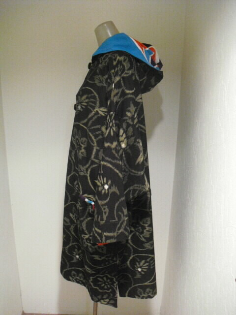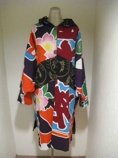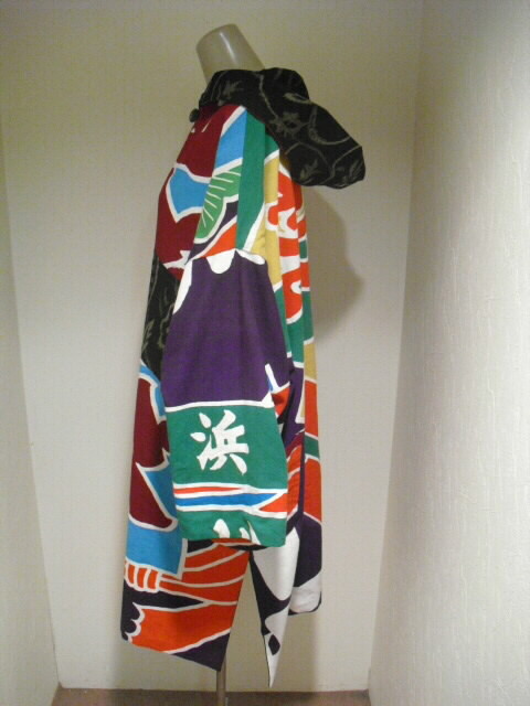 絣と大漁旗で作ったリバーシブルのフード付コートです。