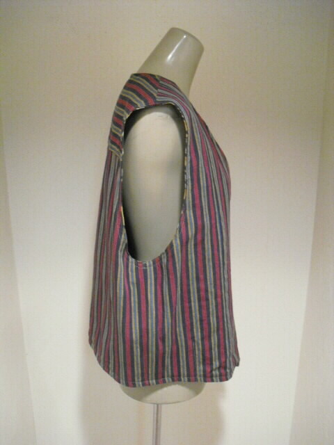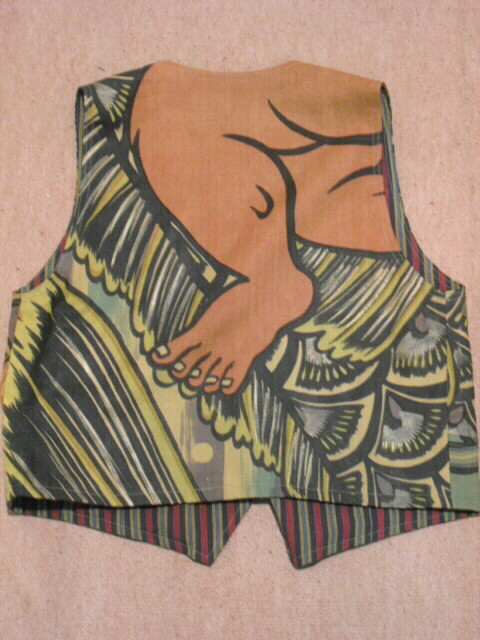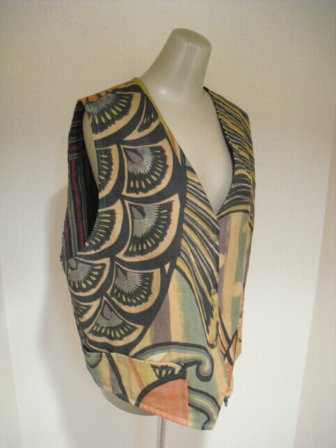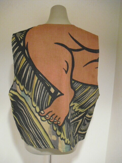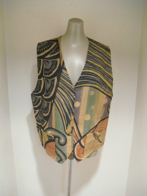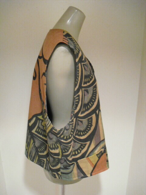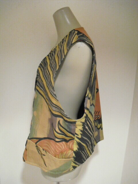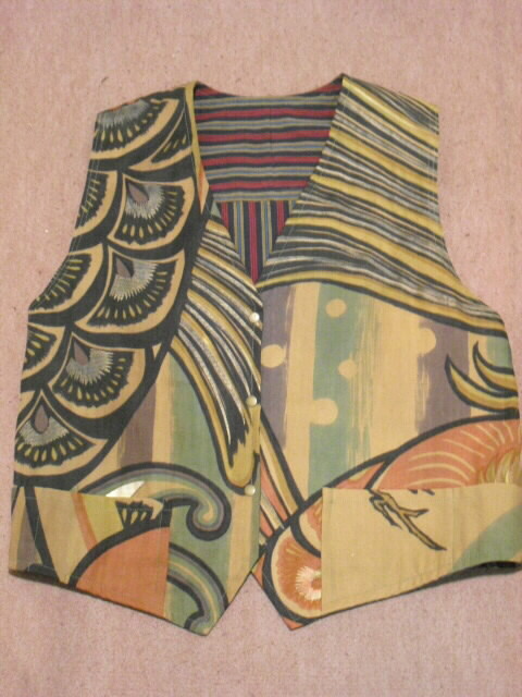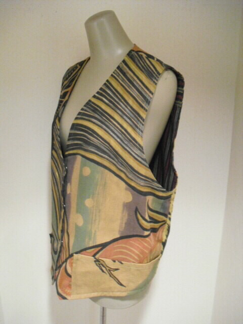 古布の「武者絵幟(のぼり)」を天然染料の柿渋で染めたベストです。