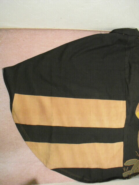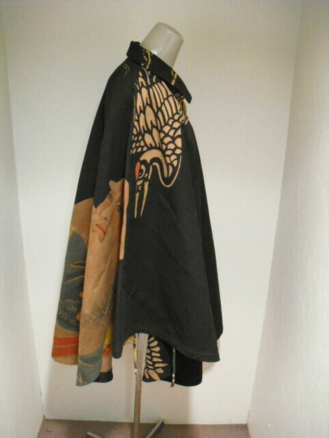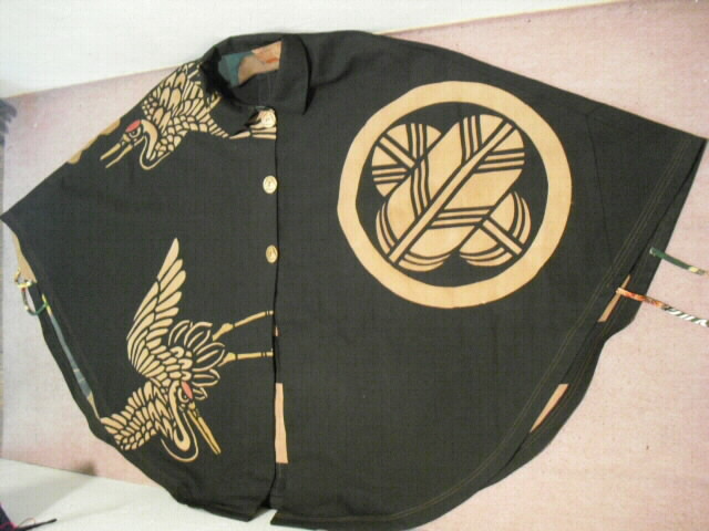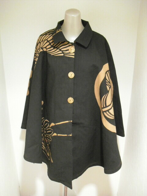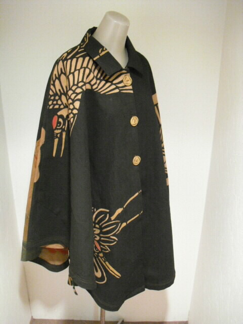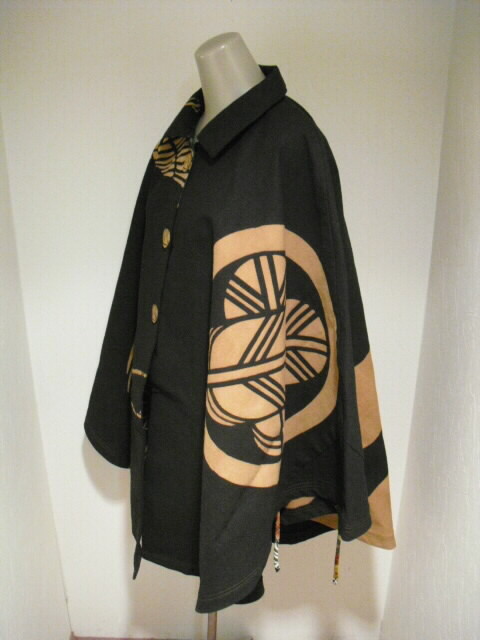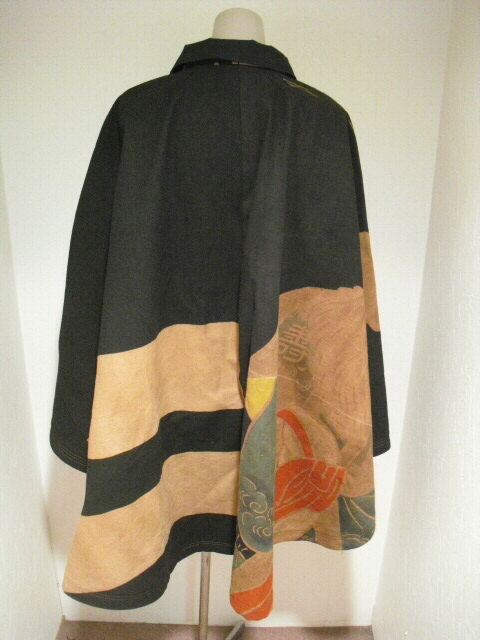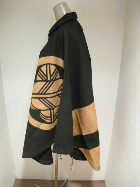 古布の「武者絵幟(のぼり)」を柿渋で染色して作ったオシャレなポンチョブラウスです。