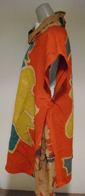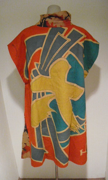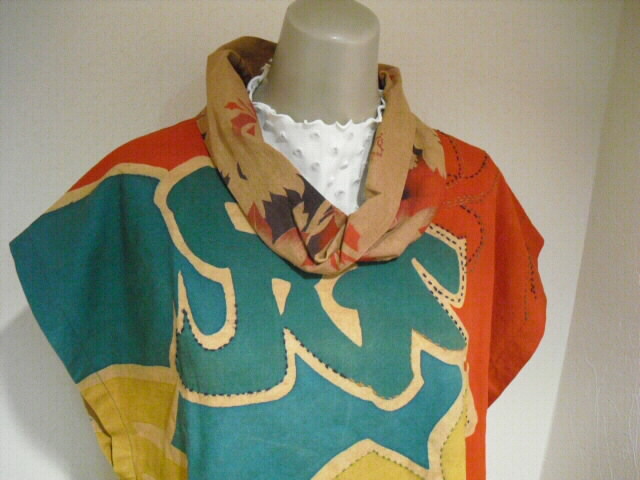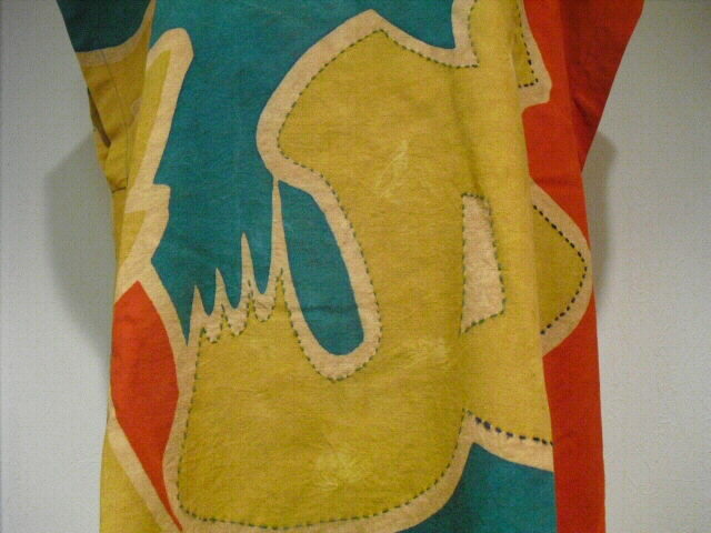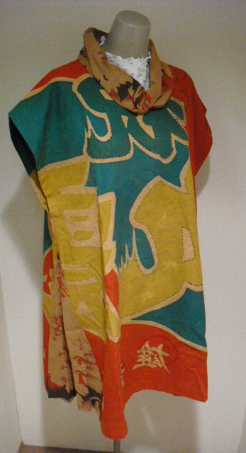 大漁旗を柿渋で染色してチュニックにリメイクしました。