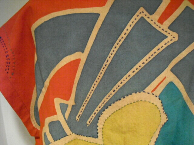 文字がリアルすぎるので、裏面を表にして、文字を柄にとらえステッチを施しました。 面白いデザインになっています。
