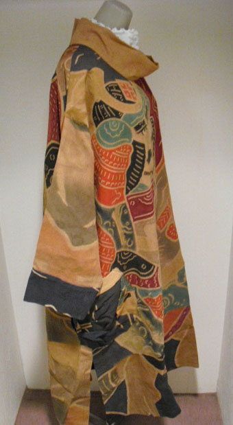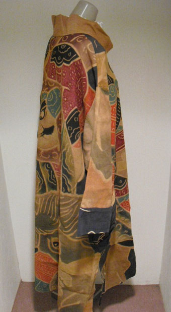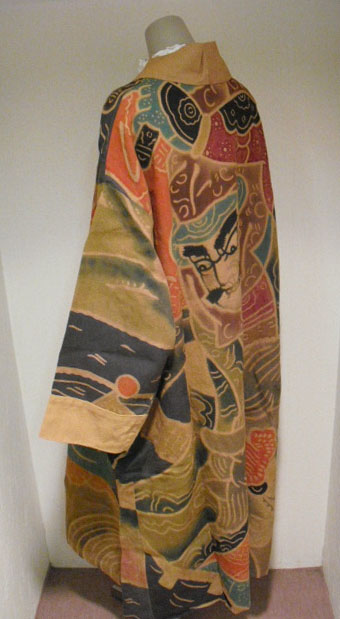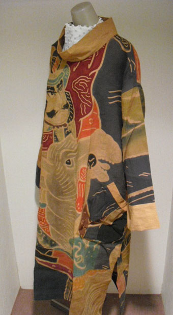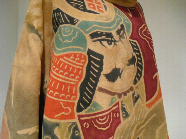 古布の武者絵のぼりを柿渋で染色してロングコートへリメイクしました。 綿素材で、軽く、とても柔らかい手触りです。