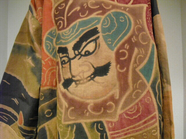 前後の身頃には武者絵の顔を大胆に配置しています。 前と後で違ったイメージですが共に躍動感があります。