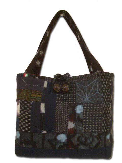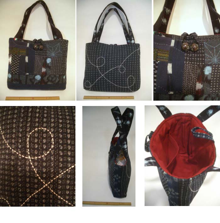 特徴・・高価な古布の絣(かすり)と着物を使い、パッチワークと刺し子で