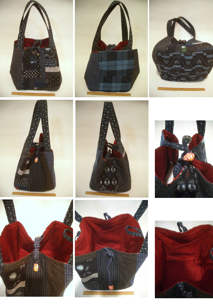 特徴・・高価な古布の絣(かすり)と着物を使い、パッチワークと刺し子で