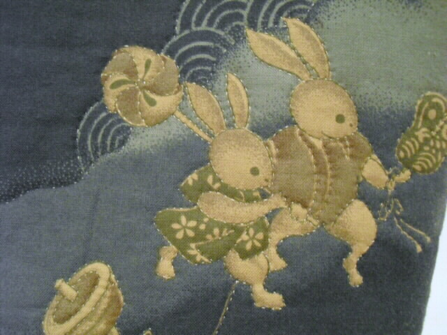 落ち着いた色合いの綿生地で兎の珍しい柄です。