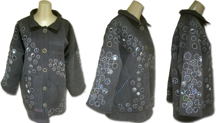 今、一番多く利用されているのは洋服です。時代を経た布であるが故、色はやさしい色に落ち着き、布の腰も折れ手ざわりも柔らかく体にしなやかになついてくれます。そして、大きな古布は洋服に、小さな古布はパッチワークに、ブローチに・・・と何度も何度も生きかえるのです。